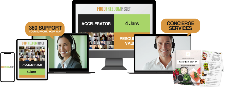 The 4 Jars Diet, included in the Food Freedom Reset, makes food simple and flexible. You'll soon understand exactly what your body needs to support its metabolic rhythm and why. Healing becomes natural and weight loss becomes automatic without ever starving or stressing your body in the process.